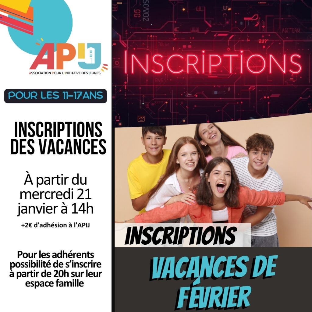 Vous pouvez vous inscrire à partir du 21 février 14h en passant nous voir à l’APIJ aux horaires d’ouverture!