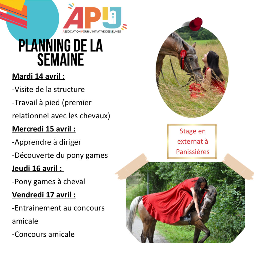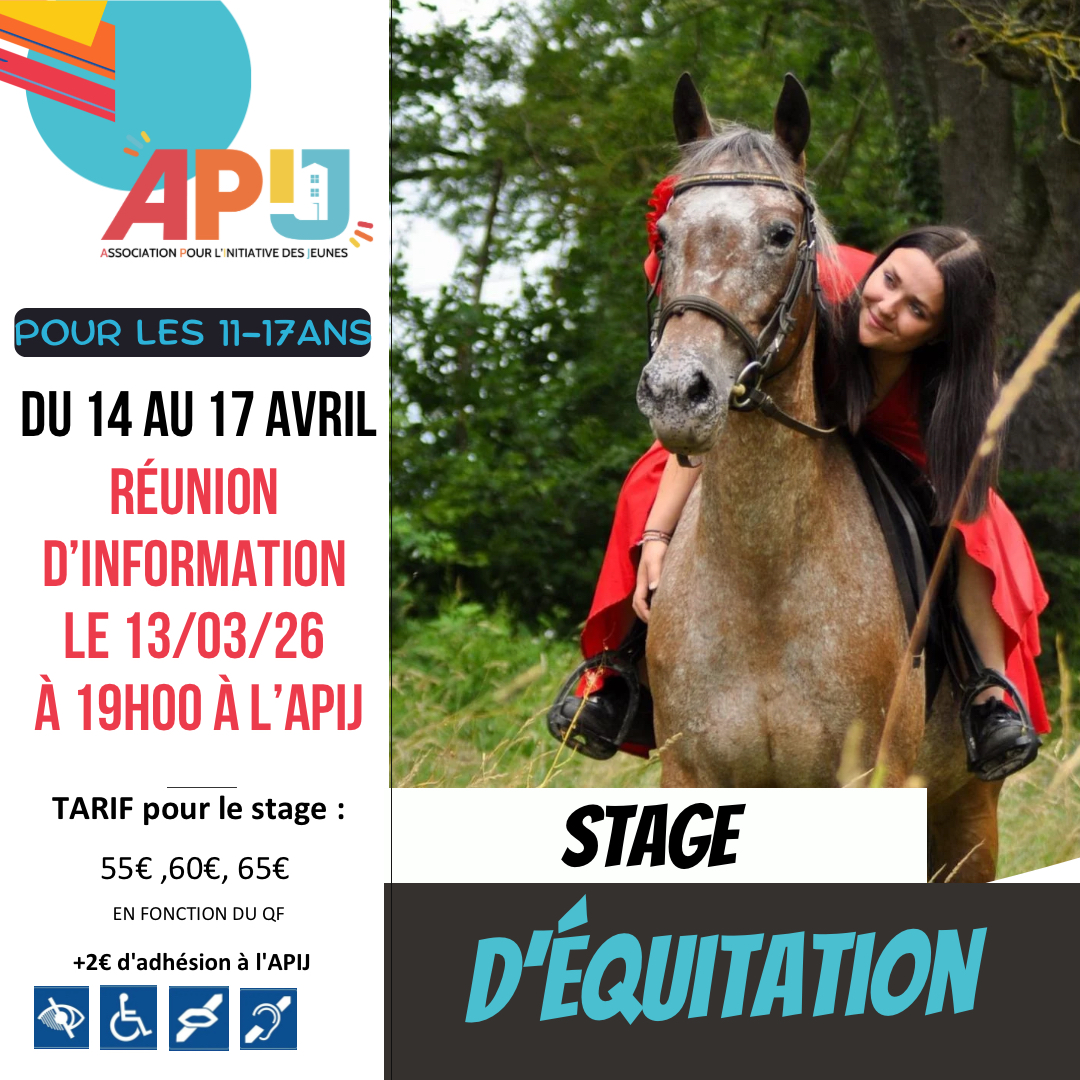 Une réunion d’information pour le stage équitation aura lieu le 13 mars à 19h à l’APIJ